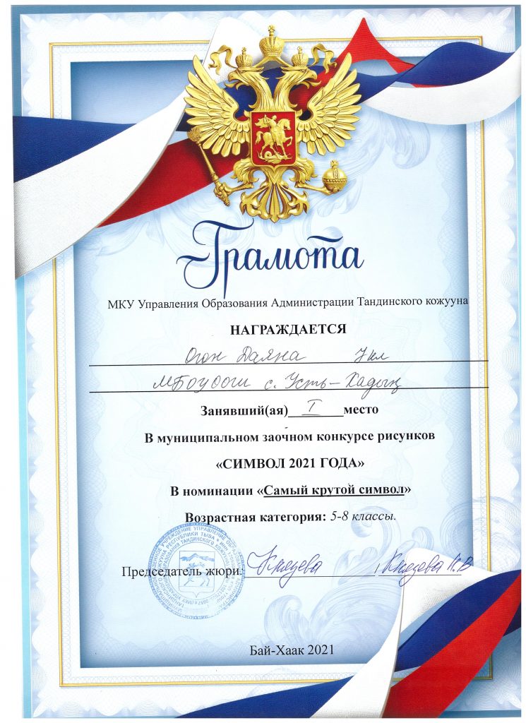Грамота в муниципальном этапе конкурса «Символ года-2021»
